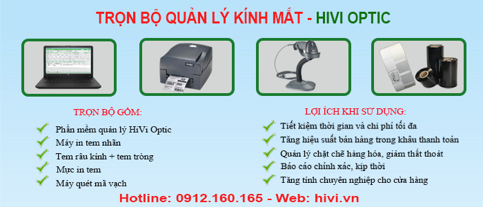 Bộ phần mềm quản lý bán hàng kính mắt HiVi Optic Pro tích hợp đầy đủ các chức năng từ in tem kính mắt, in đơn kính, in hóa đơn bán hàng, theo dõi hàng tồn kho và quản lý thông tin khách hàng....
