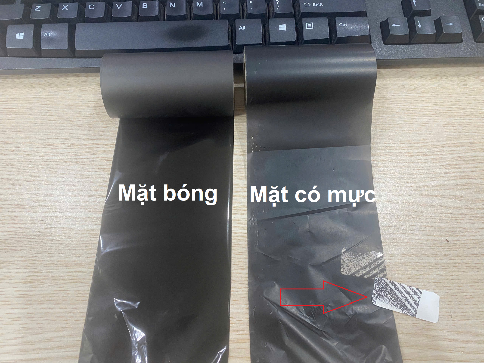 2. Xác định mặt có mực: Mực in nhiệt thường có mặt có mực và mặt không có mực. Xác định mặt có mực in bằng cách dán một miếng dán lên mực, mặt nào có màu của mực sẽ là mặt có mực.