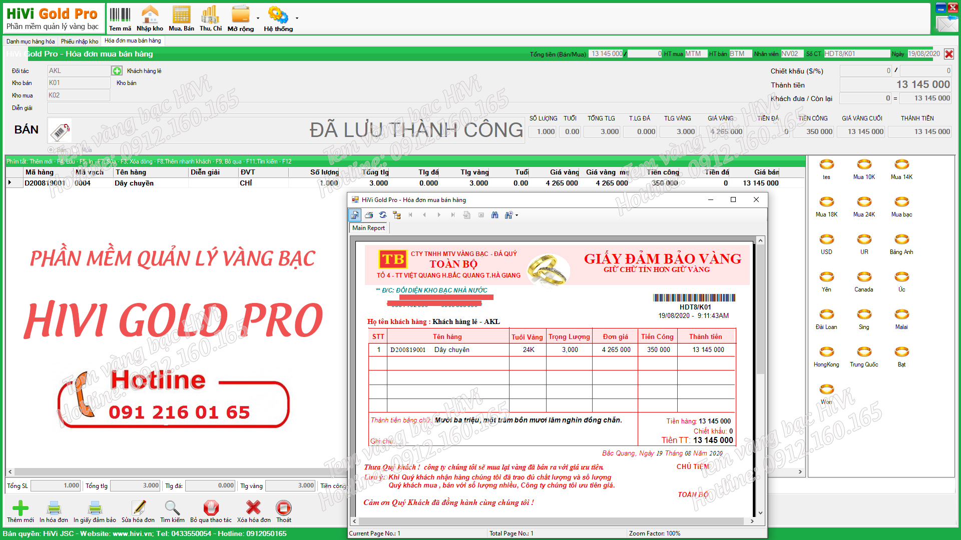PHẦN MỀM QUẢN LÝ VÀNG BẠC HIVI GOLD PRO